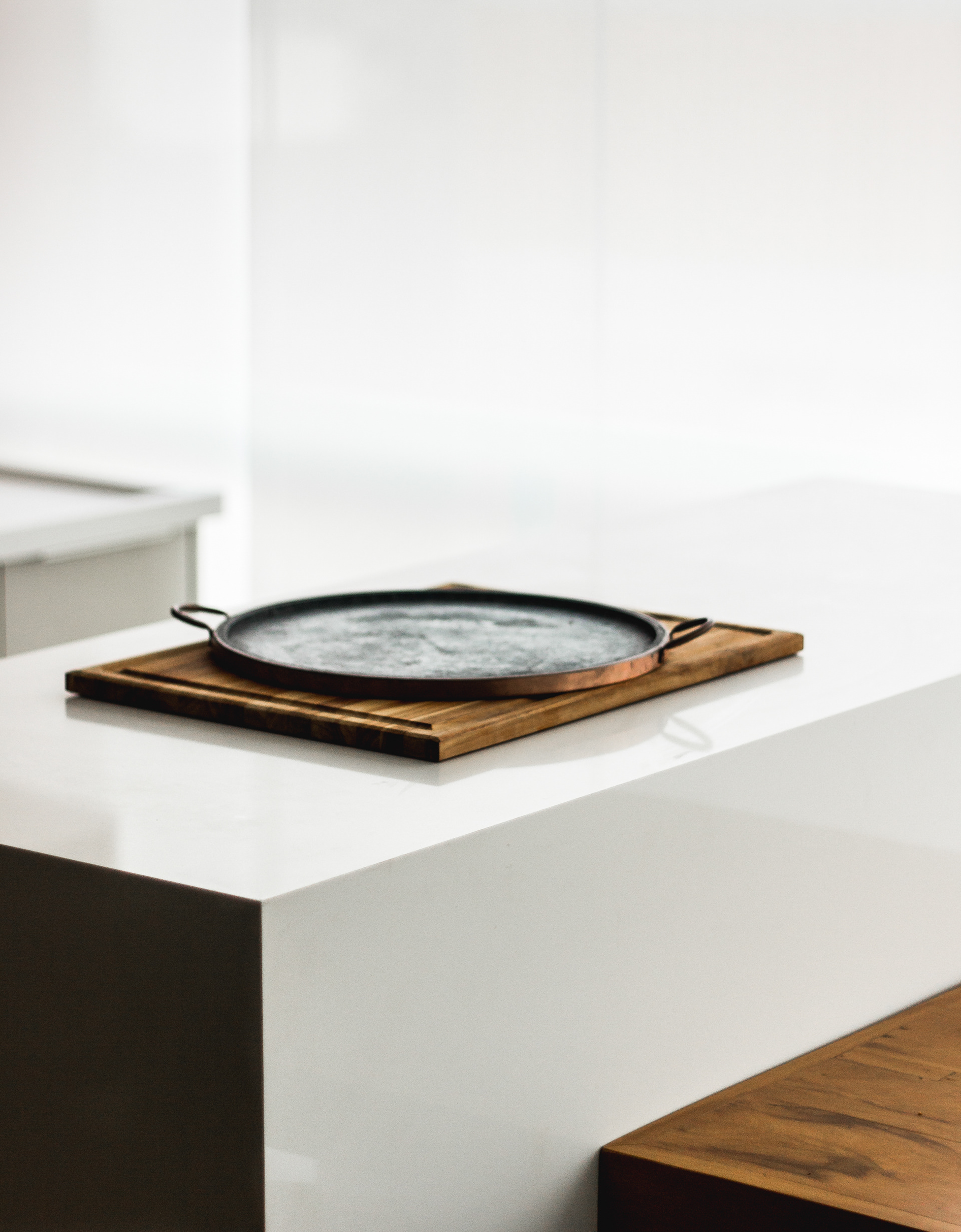 A setorização bem definida das áreas sociais dispensa divisões físicas entre os espaços, proporcionando total integração do hall de entrada, sala de estar e área gourmet. Todo o projeto de marcenaria e marmoraria foi pensado e desenvolvido por nós. O mobiliário reduzido, escolhido especialmente para este projeto, ajuda na circulação e abre espaço para o pet da família.