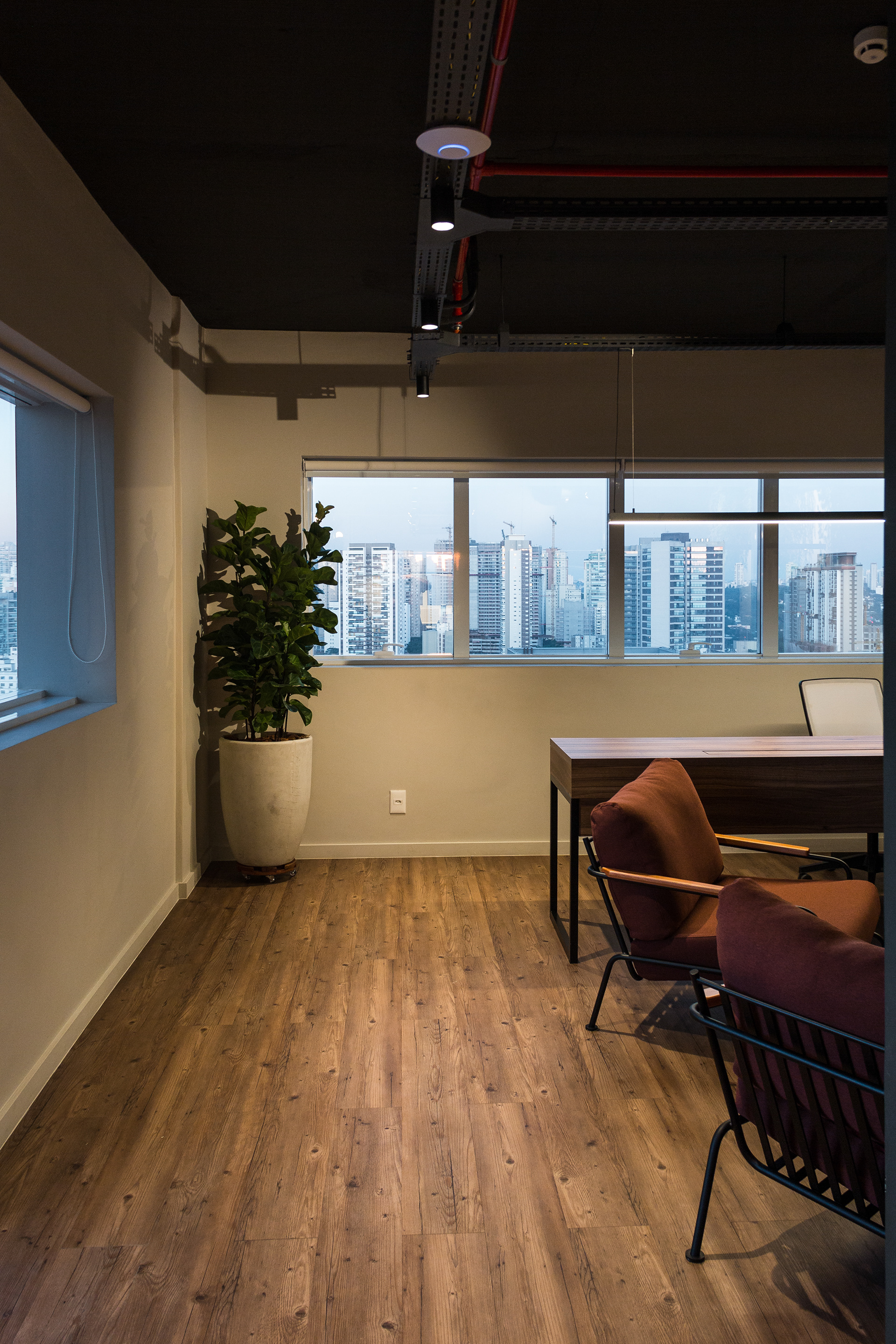 Localizado na zona sul da capital paulista, o espaço abriga a operação da nova sede da produtora Seu Menino Filmes que tem atuação focada na produção de mídias e conteúdo digital. Duas salas comerciais se integram neste projeto que busca abrir espaço para integração dos colaboradores a todo instante permitindo o trabalho colaborativo que é parte importante do DNA da empresa. O andar elevado e a vista privilegiada da cidade de São Paulo contribuem para a criação diária e são um convite ao pôr do sol.